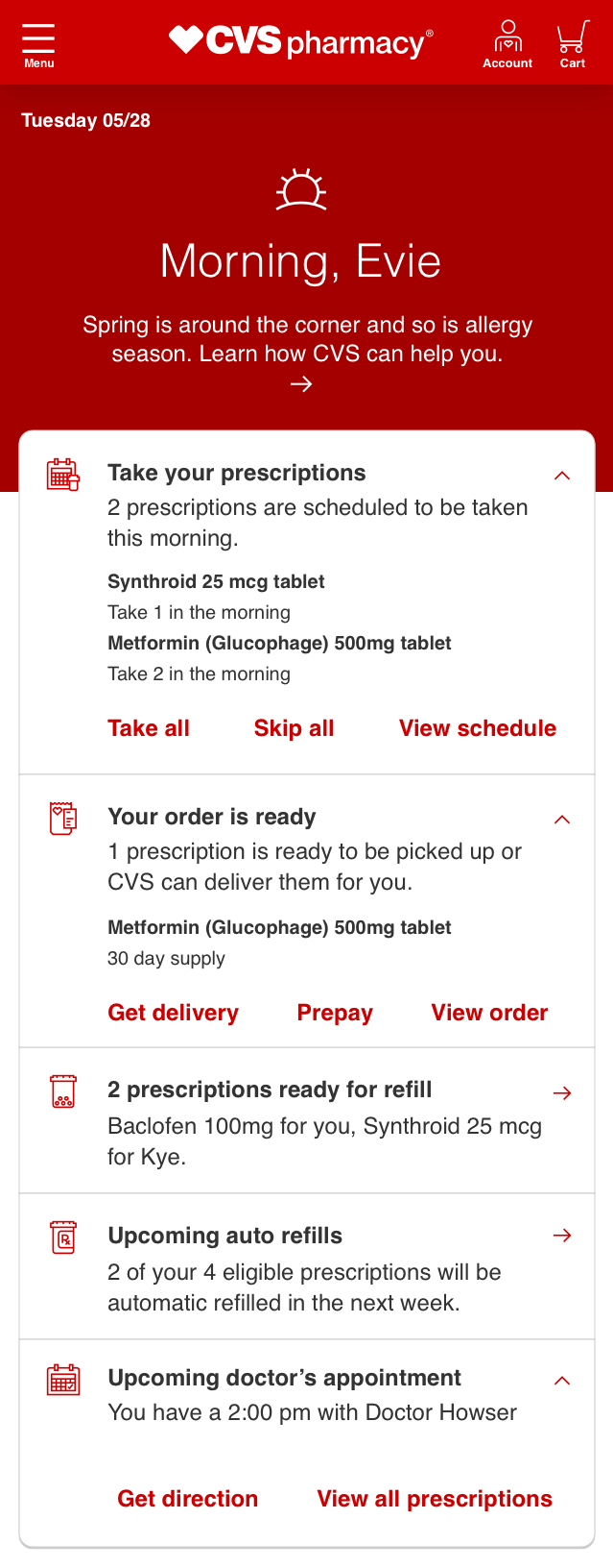 As part of an organization-wide rebrand, the Digital UX Team redesigned and optimized the member dashboard to align cross-team business goals and deliver a more streamlined experience for CVS Pharmacy members.